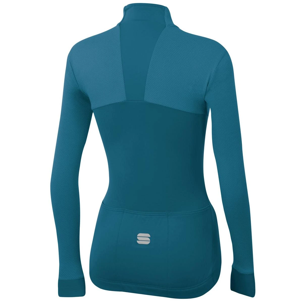 The main body, collar and cuffs are in smooth, stretchy brushed polyester. The sleeves, outside of collar and back yoke are in a textured fabric that is double dyed to create a chiaroscuro effect.